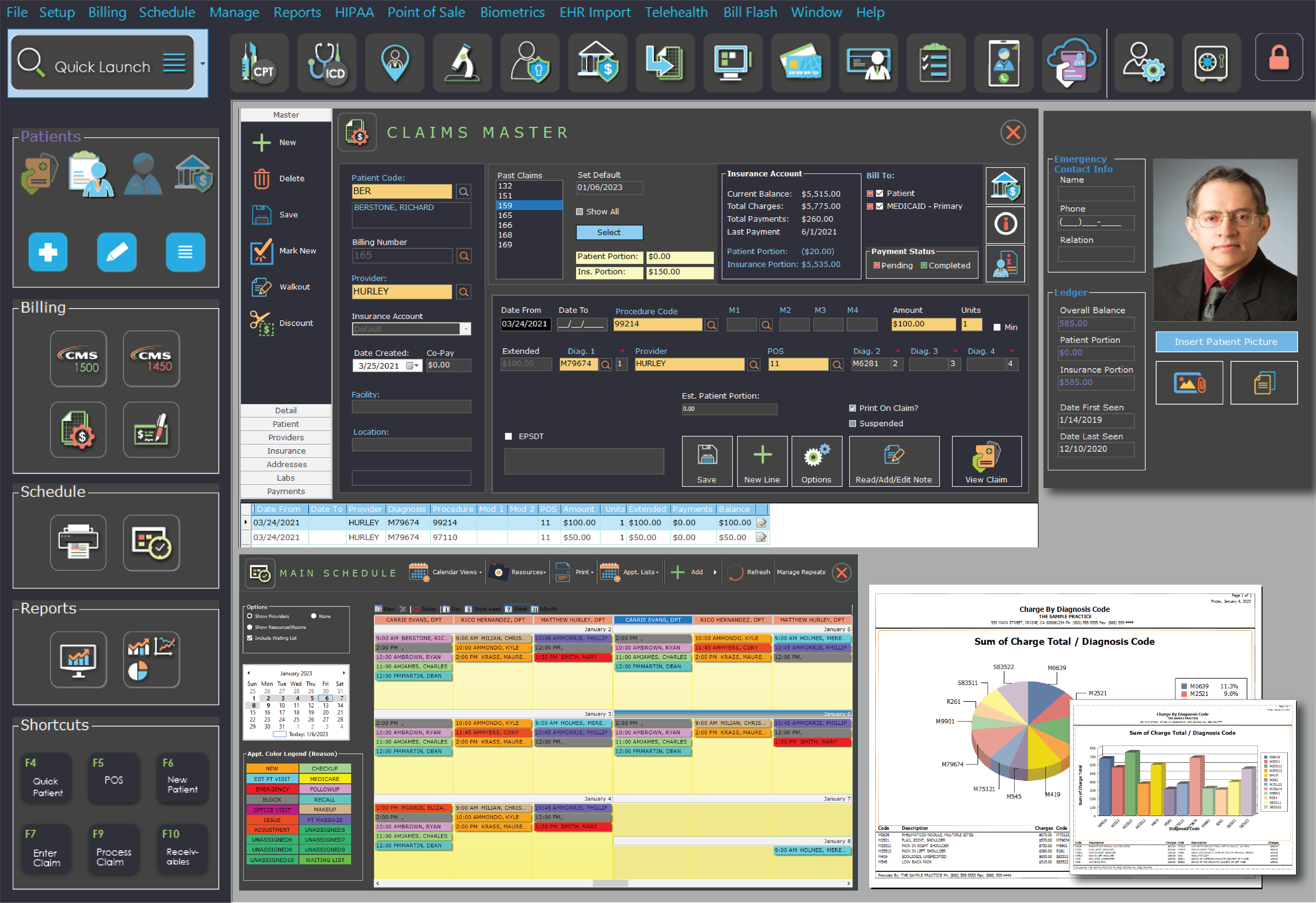 Modern, powerful, feature-rich, and inexpensive Medical Practice Management system to manage the entire revenue cycle. Our intuitive system is easy to learn with stunning graphics. You can access it the way you like; local download on-premises or hosted on our cloud.